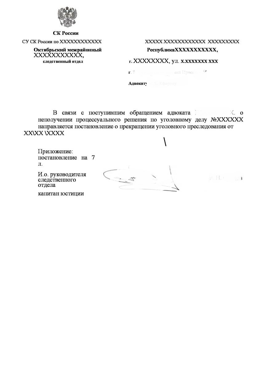 Общий срок содержания обвиняемых под стражей составил 6 месяцев. В рамках оказания как юридической так и психологической помощи адвокату приходилось посещать обвиняемого в следственном изоляторе не менее двух раз в неделю.